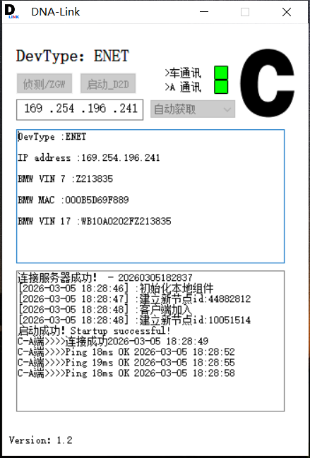 操作非常简单!和本地端连车一样 对面有ENET线或者ICOM诊断仪(其他国产新能源车型未测试都可以支持) 服务端启动A端即可 客户端启动C端即可 即可完成举例ISTA异地编程设码学习匹配互联等 试用定制等联系微信BMW8856 1002045037@qq.com 免费下载链接:DNA-LINK